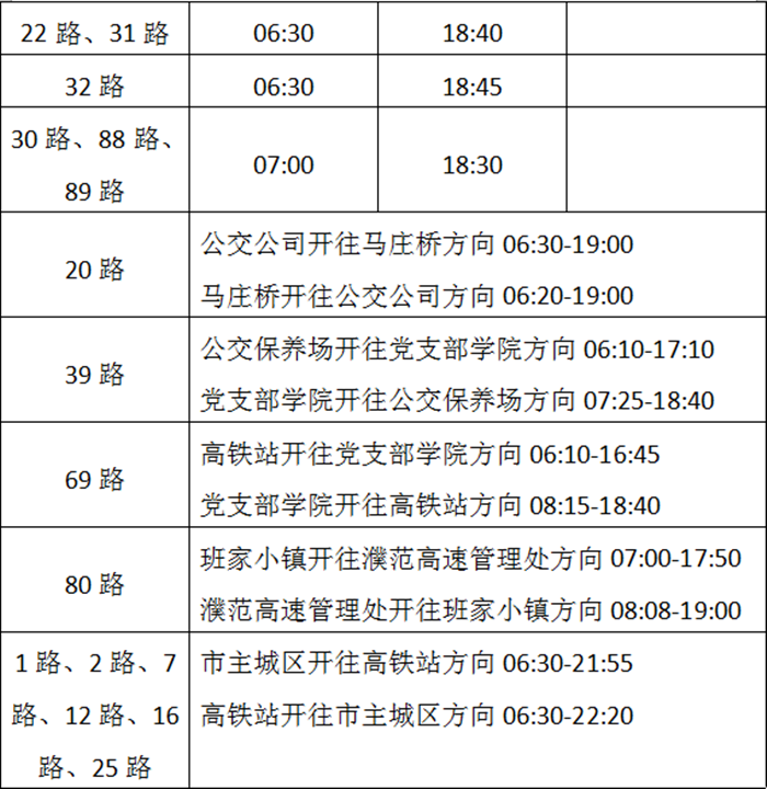 隨著季節(jié)的變化,自5月1日起,濮陽(yáng)公交線路首末班執(zhí)行夏季運(yùn)營(yíng)時(shí)間,具體線路運(yùn)營(yíng)時(shí)間如下: